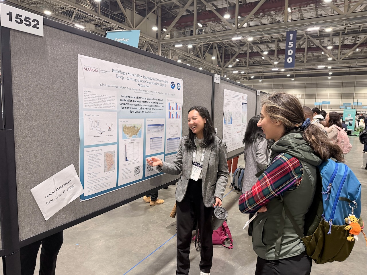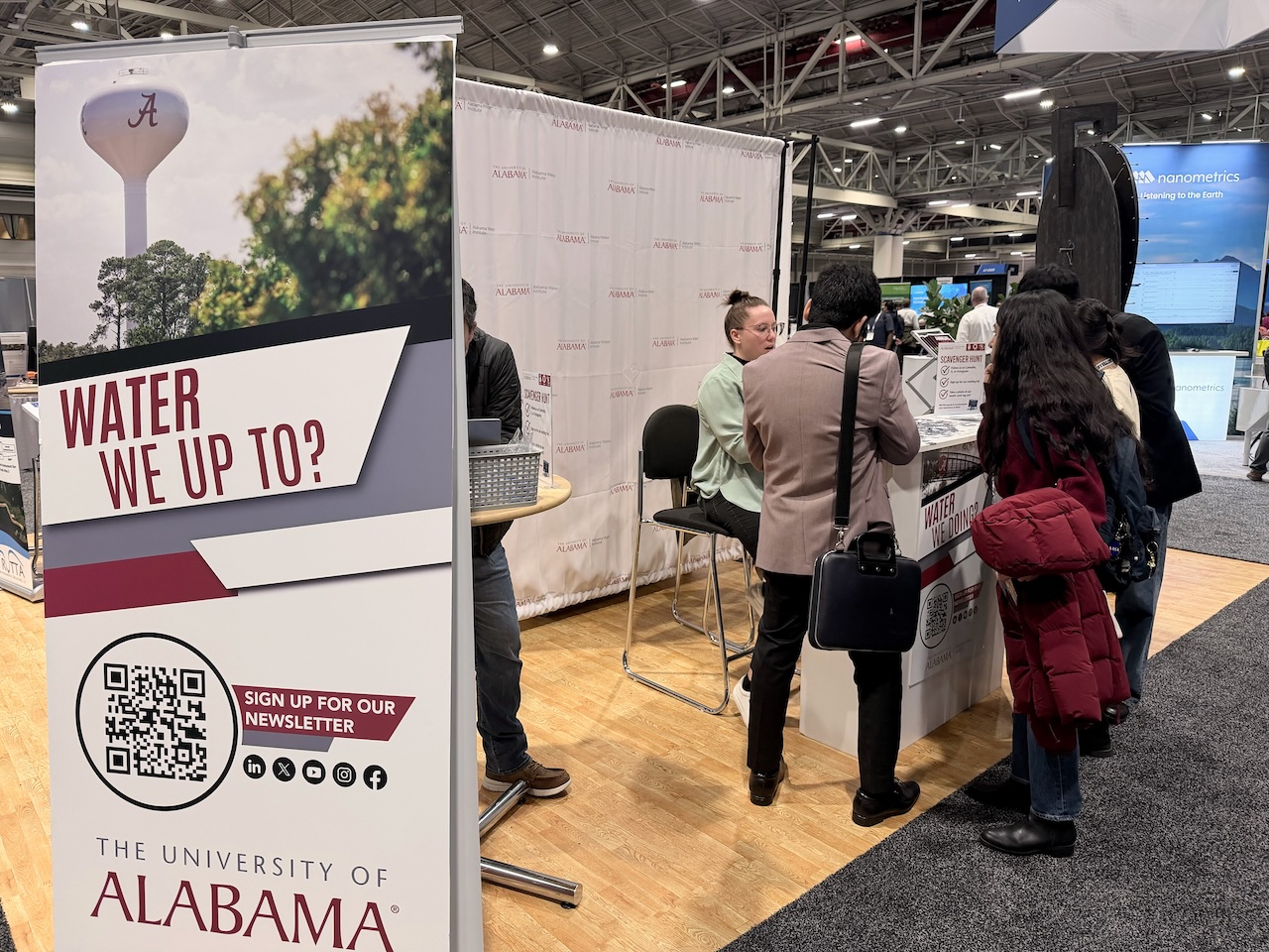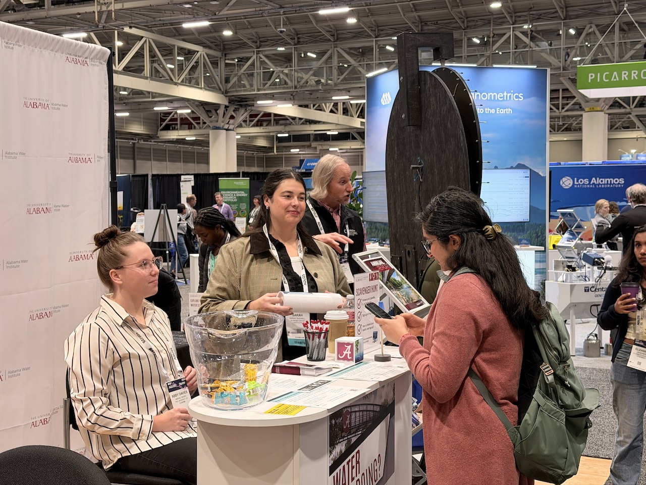 Beyond oral sessions and poster presentations, CIROH and the Alabama Water Institute maintained a strong presence on the AGU exhibit floor, using interactive engagement to spark conversations about water prediction, research to operations and workforce development.